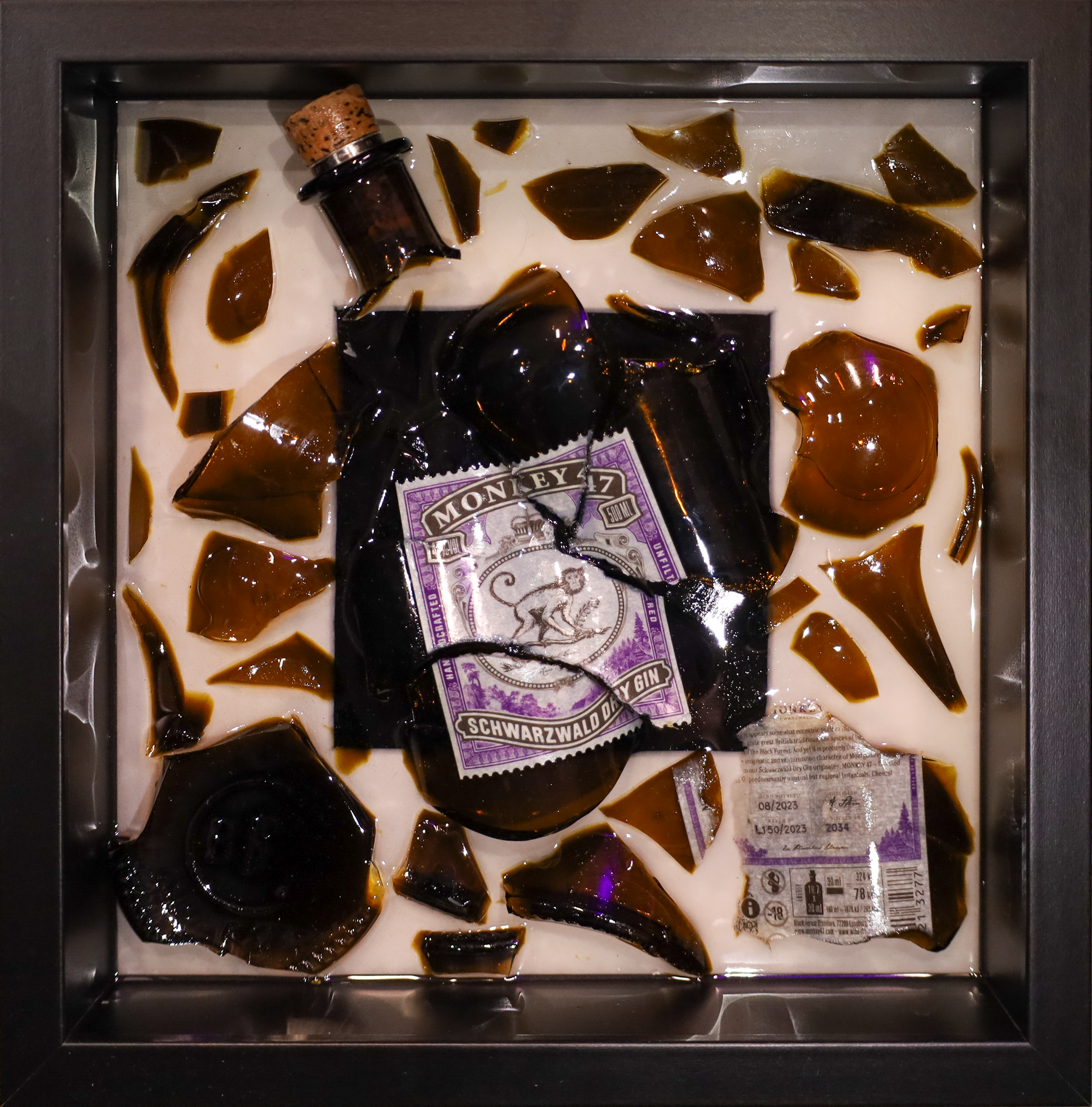 "The Monkey" ein Kunstwerk, dass die kulturelle Finesse von Monkey 47 Gin in einer zerbrochenen Flasche zelebriert. Jeder zersplitterte Teil dieser kunstvollen Flasche erzählt eine Geschichte von Handwerkskunst und Tradition. Die feinen Details auf den Scherben fangen die verspielte Seele von Monkey 47 ein und reflektieren die kulturelle Tiefe des Schwarzwalds. "The Monkey" ist mehr als nur eine zerbrochene Flasche, es ist eine visuelle Ode an die Aromen und Traditionen, die in jedem Tropfen stecken. Tauchen Sie ein in dieses Kunstwerk und lassen Sie sich von der kulturellen Vielfalt von Monkey 47 inspirieren – eine Erfahrung, die weit über den Genuss hinausgeht.