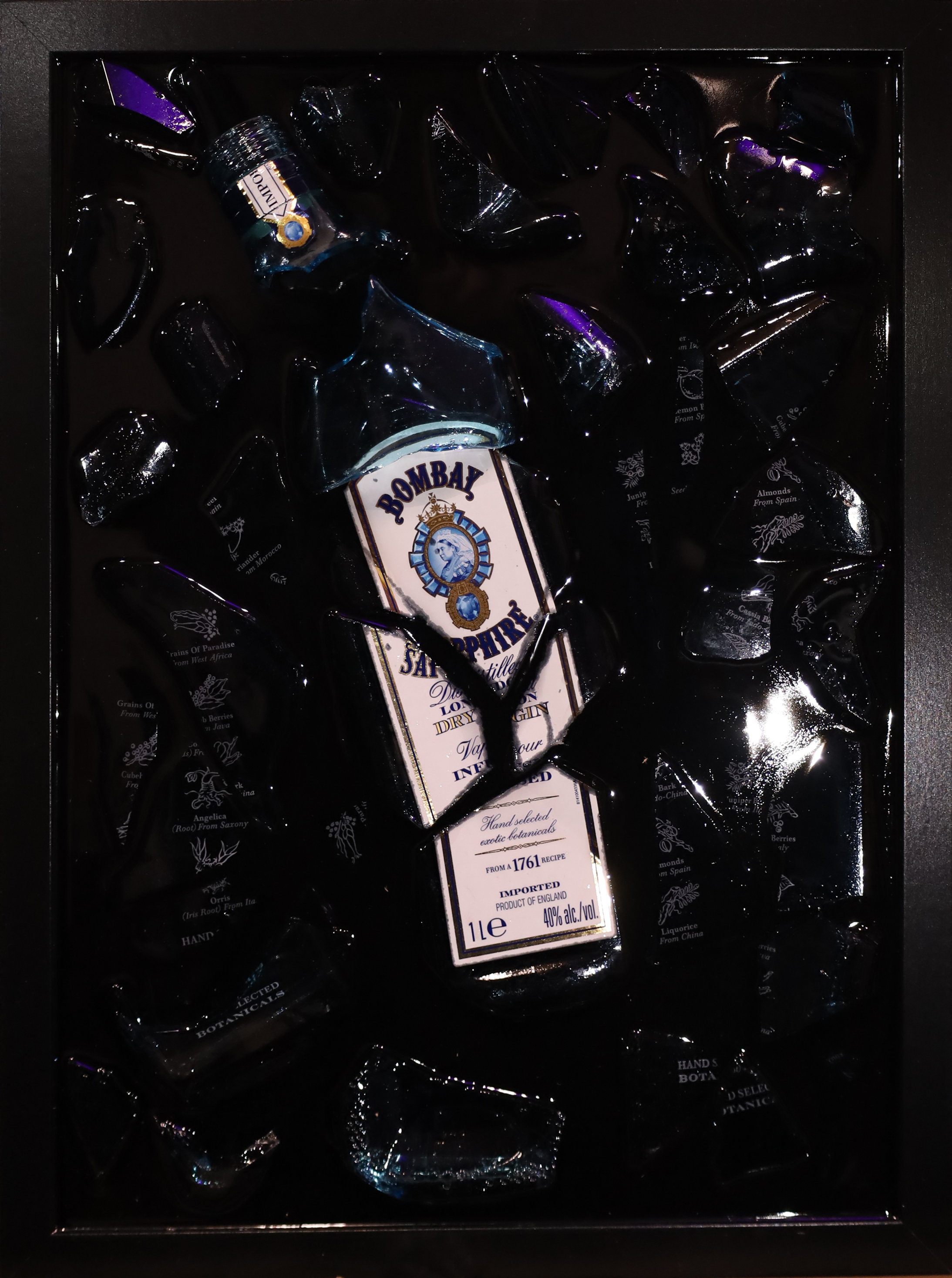 "Bombastic" transformiert eine zerbrochene Bombay Sapphire Gin-Flasche in ein visuelles Fest. Die Flasche präsentiert nicht nur die markante Blaue Saphir-Tönung des Gins, sondern auch kunstvolle Illustrationen, die auf die botanische Vielfalt und die Reise der Aromen hinweisen. An den Seiten der Flasche offenbaren sich fesselnde Geschichten über die Auswahl der exquisiten Botanicals und die handwerkliche Kunst der Destillation. Das Kunstwerk zelebriert die bombastische Fusion von Geschmack und Ästhetik, indem es die Sinne durch die zerbrochene, aber kunstvoll gestaltete Flasche hindurch in eine Welt von opulentem Genuss entführt. "Bombastic" ist nicht nur ein Kunstwerk, sondern ein Erlebnis, das die Explosion der Sinne in der Welt von Bombay Sapphire Gin zelebriert.